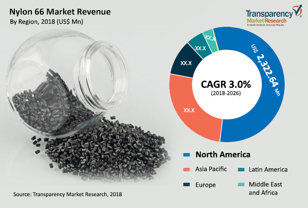 The global nylon 66 market is expected to grow at a formidable CAGR of 3% during the forecast period – 2018 to 2026. According to analysts, the global nylon 66 market is expected to attain an overall value of US$6bn by the end of 2026.