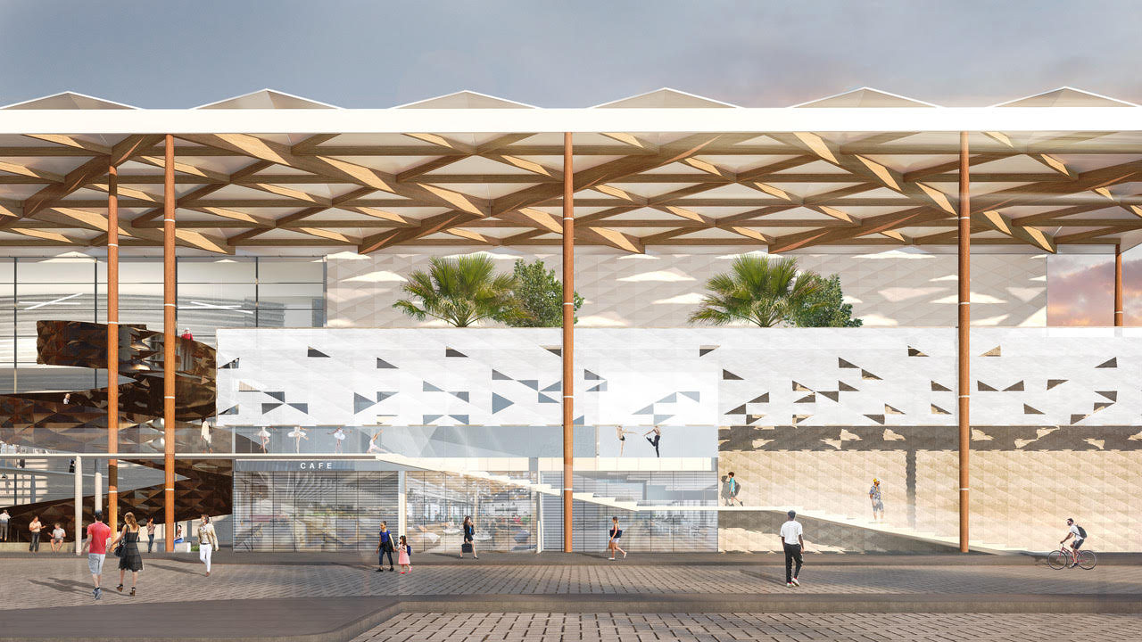 The Center will also infuse major capital into the existing amphitheater to greatly improve the experience for up to 3,500 attendees through improved amenities, access, parking, ticketing, seating, & weather-proofing with an iconic permanent canopy for shade & weather protection. This canopy has been designed to provide a “third space” by making a space that is outdoors feel indoors through innovative kinetic elements that cool the space. The improvements to the existing venue will also include a “structural curtain” to close the front of the amphitheater, enabling the space to be transformed into an additional climate-controlled performance, event & immersive media space that seats up to 450.