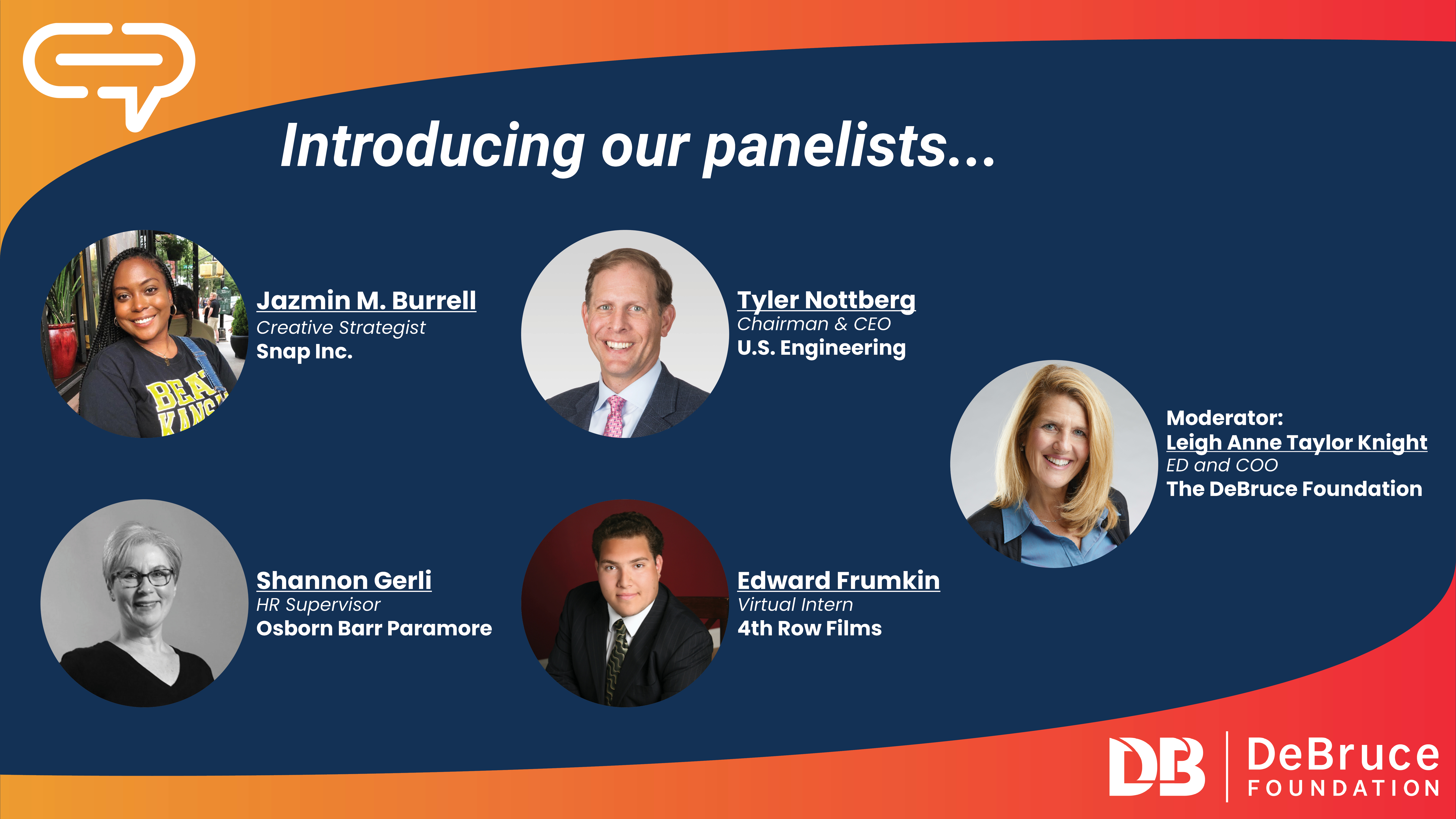 - Moderator: Dr. Leigh Anne Taylor Knight, ED and COO, The DeBruce Foundation