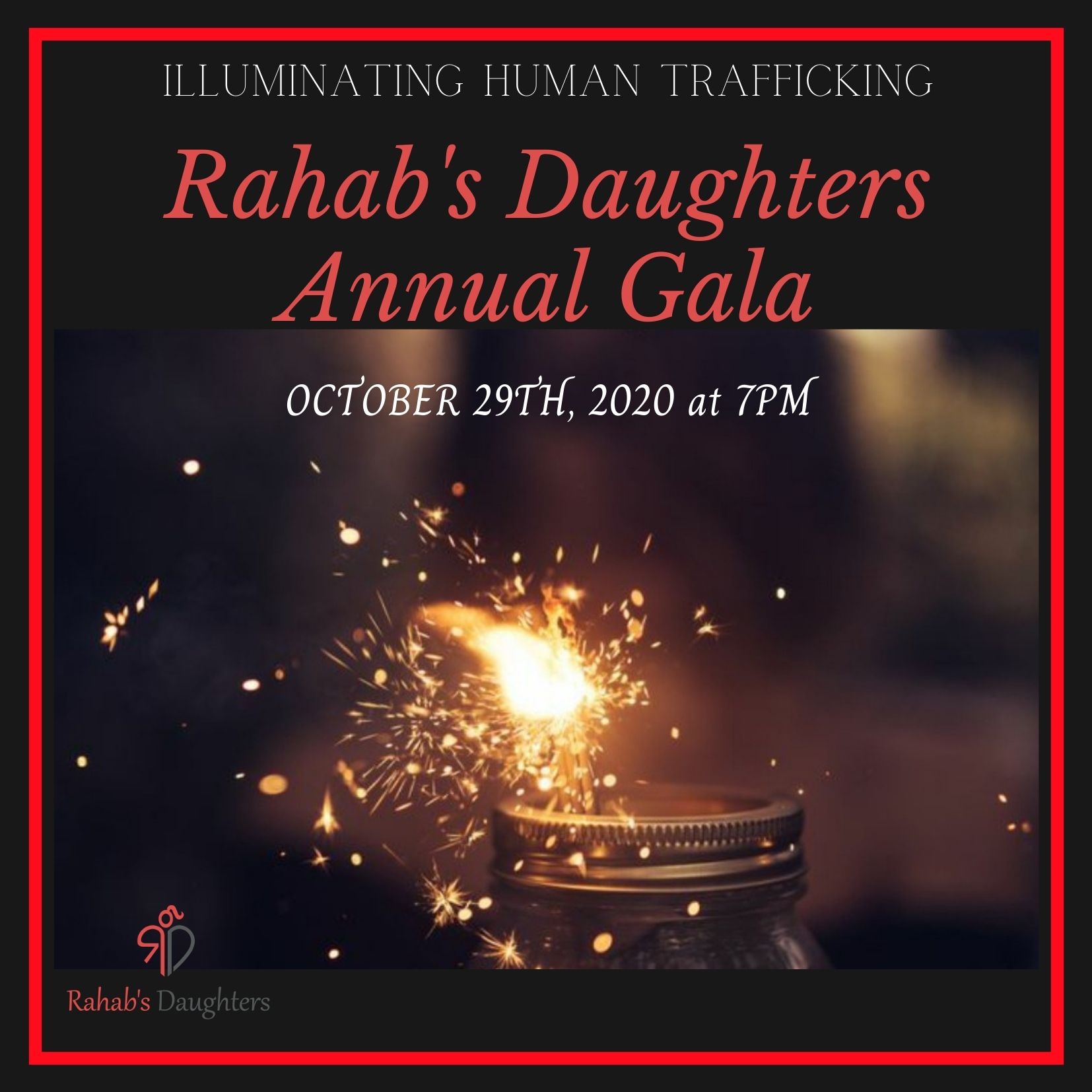 Rahab’s Daughters cordially invites you to join us on October 29th, 2020, at 7 PM in celebrating our “Illuminating Human Trafficking" Annual Gala. Raise a glass with us (from the location of your choosing) as we celebrate our survivors who are now thriving. Although we are not able to gather in person, this year's gala promises a unique opportunity to come together in new and creative ways. Our speakers will share powerful stories about surviving human trafficking and thriving. And for the first time, we will bring the gala to you! It will be a memorable event and a chance to take a stand against human trafficking.