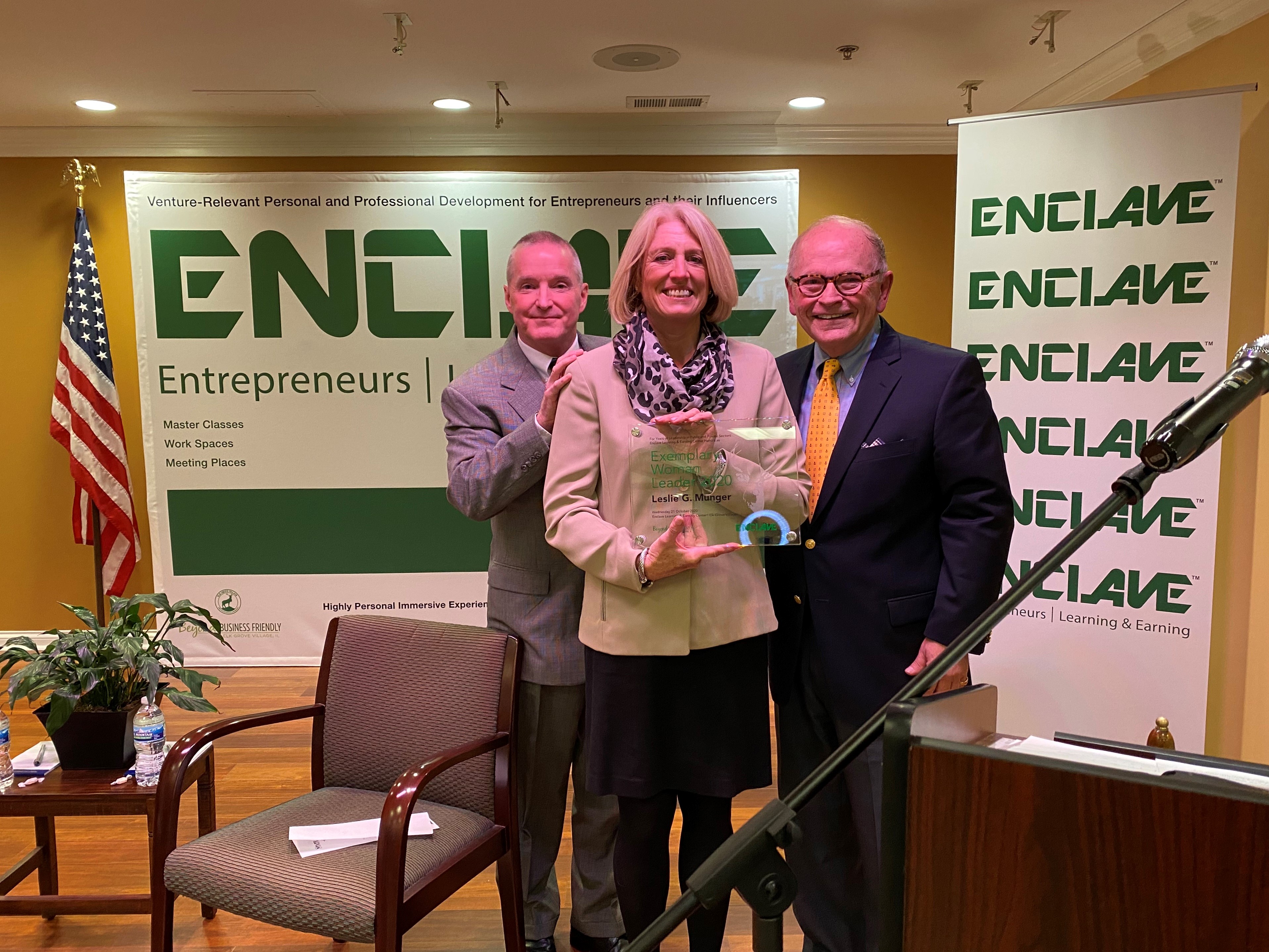 “At Enclave, our principal focus remains on the ‘unset mindset’ of innovative entrepreneurs and other organization builders. Here we prioritize individuals first, ventures second, and profits third; on competence plans more so than business plans. We know that Leslie Munger, and other exemplary women in leadership roles, in general, readily embrace Enclave’s humanistic approach,” said Dallas.