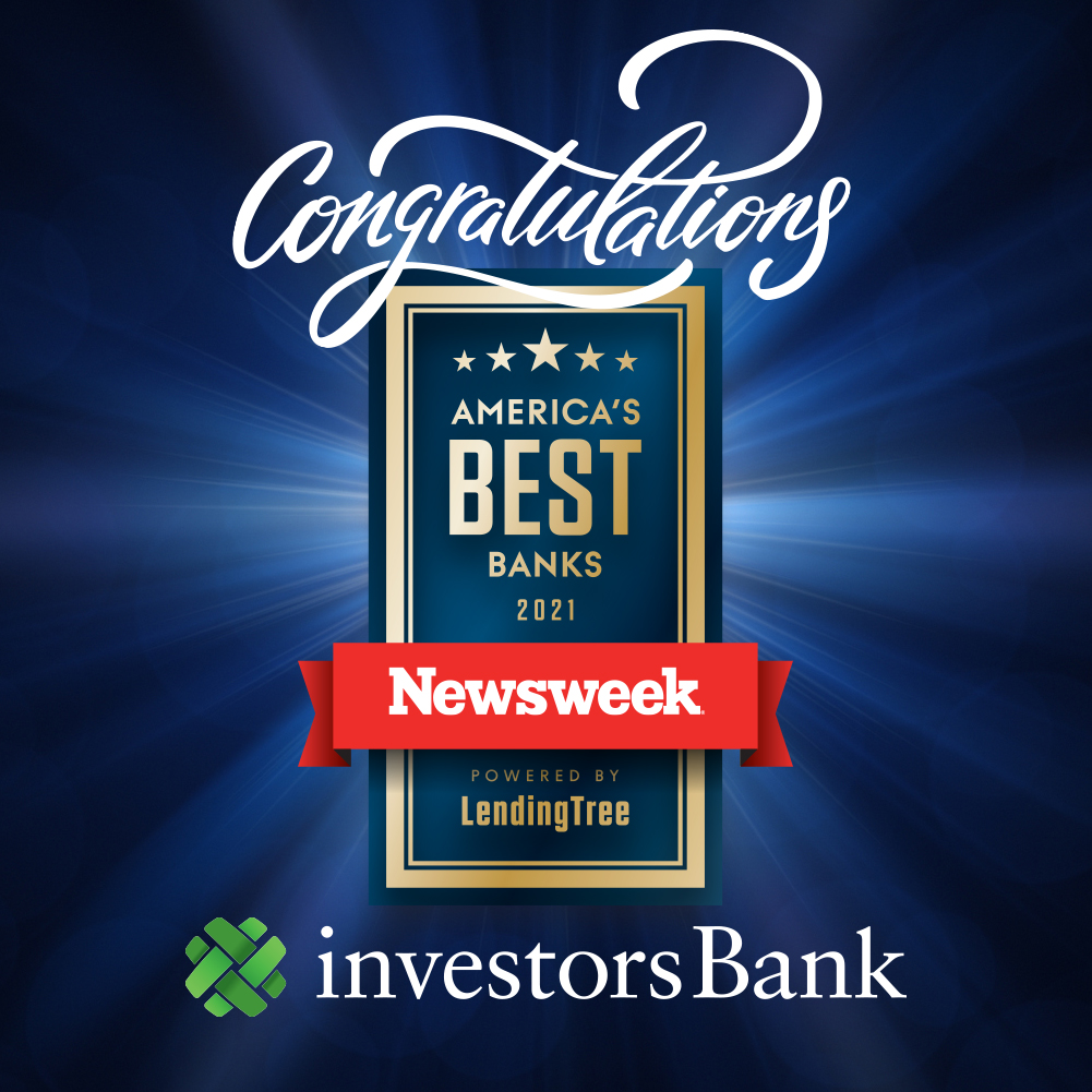 Investors Bank, headquartered in Short Hills, New Jersey, is a full-service commercial bank that has been serving customers since 1926. With over $27 billion in assets and a network of more than 150 retail branches, Investors Bank delivers personalized services and products tailored to the needs of its customers. Investors Bank’s banking services include complete deposit, loan and treasury management products for consumers and businesses. In 2020, Newsweek named Investors Bank the “Best Big Bank in New Jersey.” Investors Bank: Member FDIC and Equal Housing Lender.