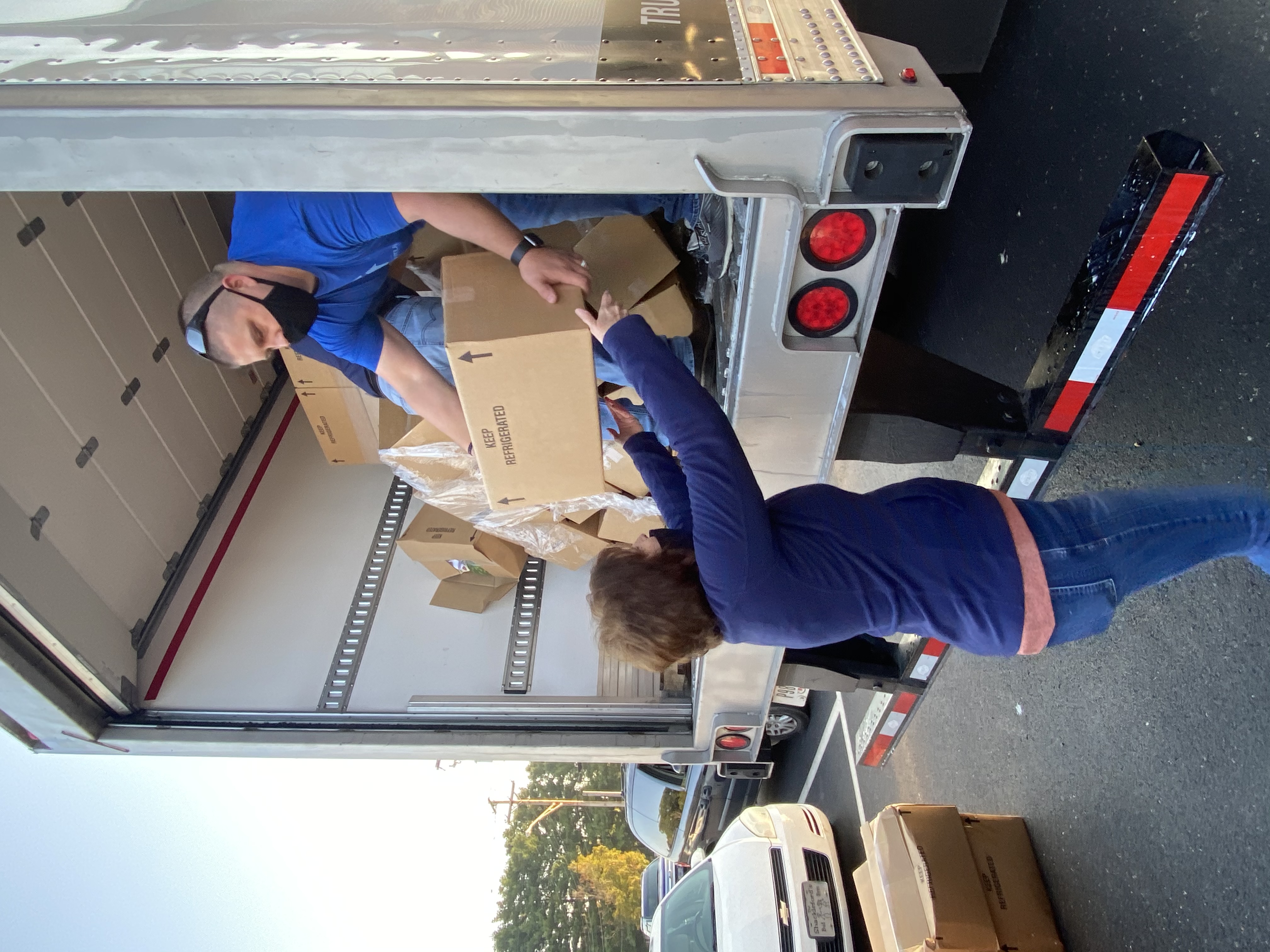 To serve a large number of people in the community, CAP’s Grateful Bread Food Pantry partnered with First Baptist Church in Mt. Vernon to host the food box distribution on its campus. The boxes were supplied by the United States Department of Agriculture in an effort to provide food to families impacted by COVID-19. Each box contained locally sourced fresh fruits and vegetables and dairy and meat products. Members of First Baptist, other local churches, and members of the Rockcastle Baptist Association helped CAP staff and volunteers load boxes into participants’ vehicles and took boxes to other areas of the community to distribute or deliver.