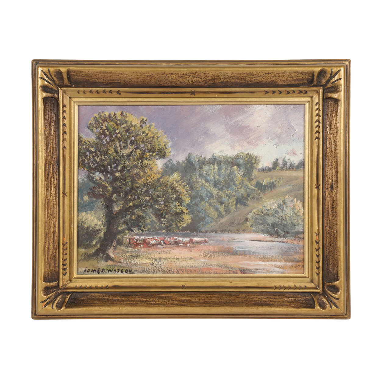 There were four oil on board paintings in the auction by the noted Canadian artist Homer Ransford Watson (1855-1936), all from the collection of the late Jack Wilfong, Watson’s paper boy and all done in the 1930s. Each was framed and signed. The paintings exhibited many of Watson’s key trademarks and drama, and sold for prices that ranged from $3,835 to $4,425.