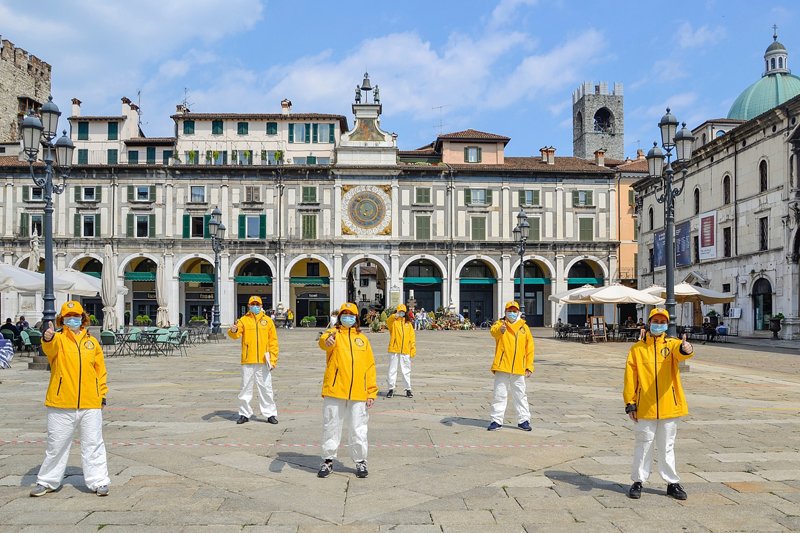 Scientology Volunteer Ministers gather at Brescia’s famous Piazza Della Loggia to begin their prevention initiative.