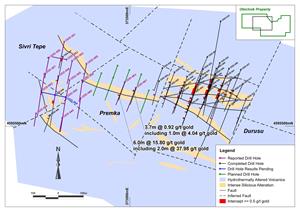 Highlights at the new Premka zone include drill hole ODD-063; 6.0m grading 15.80 g/t gold & 76.72 g/t silver (including 2.0m at 37.98 g/t gold & 165.50 g/t silver). Drill hole ODD-061 intersected 7.7m at 0.92 g/t gold and 53.76 silver (including 1.0m at 4.04 g/t gold and 331.00 g/t silver). A program of step out drilling is in progress on the strike extensions including testing the down dip and up dip extensions to the intersects.