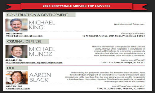 Scottsdale Airpark News has named Aaron Black as one of the Top Scottsdale DUI Lawyers for 2020 during its November issue.