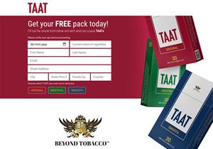The Company’s TryTaat landing page (http://trytaat.com), where current tobacco smokers of legal age in the United States can request a free sample pack to be sent to them by mail