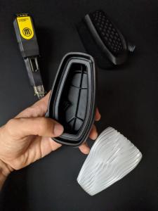 ● Polymaker PC-PBT: Esta mezcla de polímeros combina la buena resistencia química del PBT (tereftalato de polibutileno) con la robustez y dureza del policarbonato. En comparación con las resinas de PC y los compuestos de PC-ABS, el PC-PBT ofrece una mejor resistencia a los productos químicos, lo que lo hace factible para aplicaciones impresas donde la resistencia al contacto intermitente con combustibles, aceites, lubricantes o limpiadores es necesaria. Funciona bien en circunstancias extremas, ya sea en contacto con productos químicos a base de hidrocarburo o en entornos con temperaturas bajo cero. Polymaker PC-PBT es un material especializado que mantiene una buena rigidez y un comportamiento de fractura dúctil natural a bajas temperaturas.