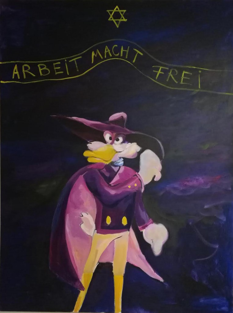 In this new series, neither Batman nor Superman, nor any of the other superheroes that Kharchenko places at the gates of Auschwitz, free the prisoners nor stop the genocide. Uncle Scrooge did not, neither did Spiderman, nor silly Goofy, who usually always wins; the most pompous of all superheroes, Darkwing Duck, a parody of Batman, did not, nor, of course, Bugs Bunny, who Kharchenko depicts having sex with a female rabbit outside the Auschwitz gates.
