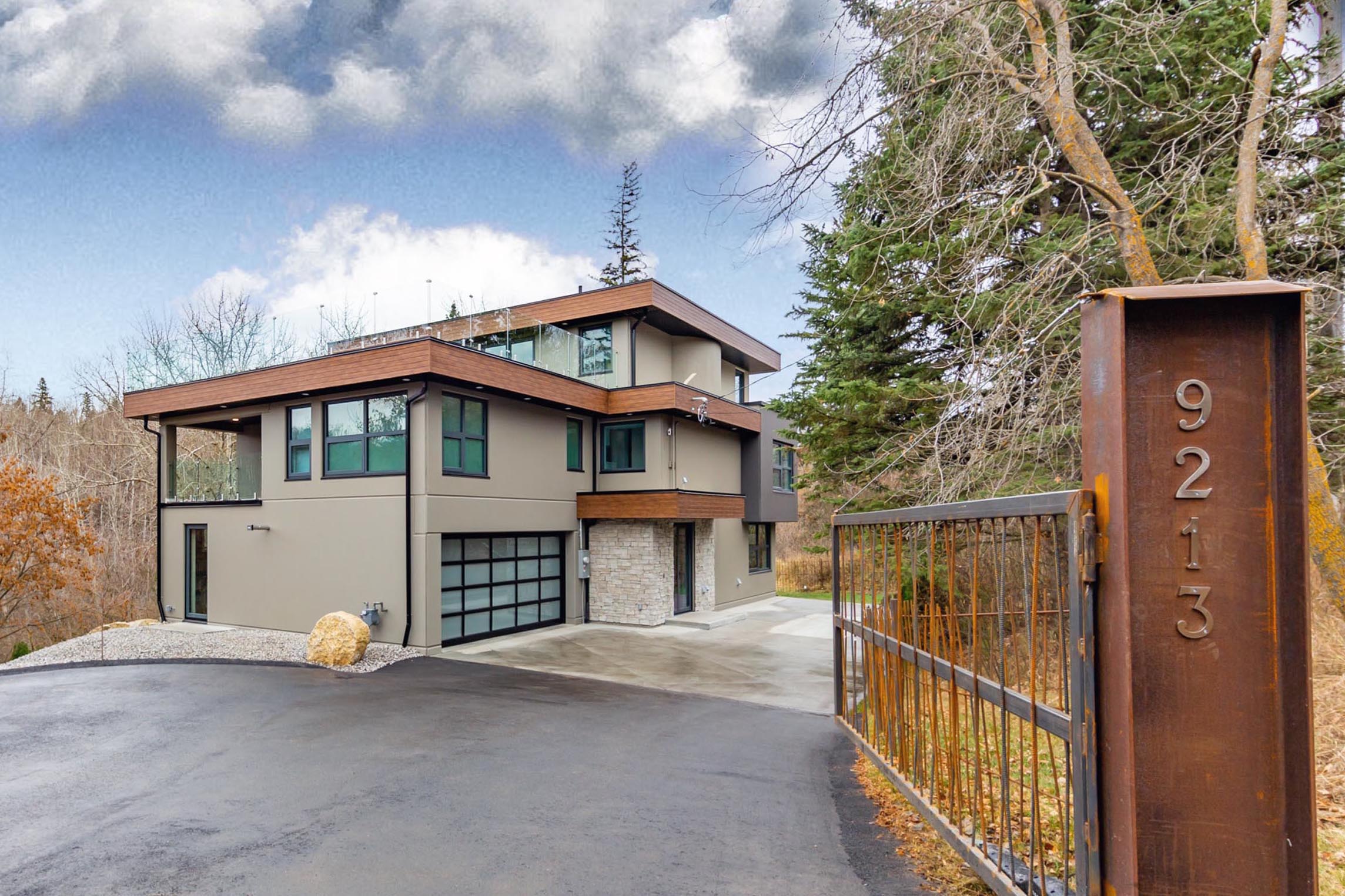 Additional features include floor-to-ceiling windows with ample natural light; gourmet kitchen with top-of-the-line Wolf appliances and custom walnut cabinetry; a private master level with massive walk-in closets and coffee station; a marble, ensuite spa-inspired bath with copper soaker tub and solid marble waterfall shower; finished, walk-out basement; private office with a bookshelf door; and energy-efficient amenities and construction, including smart lighting, a linear bio flame fireplace, EV vehicle charging station and fire suppression system—all just minutes to Downtown Edmonton and only miles to the University of Alberta.