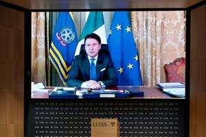 Italian Prime Minister Giuseppe Conte connected from Palazzo Chigi to address LUISS students during the inauguration event for the 2020-2021 academic year.