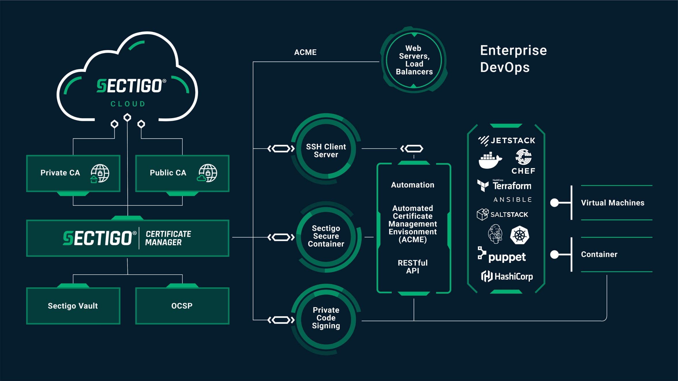 Sectigo Certificate Manager, the heart of Sectigo’s Digital Identity Platform, is used by hundreds of enterprises across the globe to issue, renew, and manage certificates for their mission-critical applications. With these new integrations, IT teams benefit from a centralized management platform that can be used to enforce the security policies across the organization. In addition, if enterprises prefer, they can continue to use their DevOps tool or another PKI implementation for issuance, and still use Sectigo Certificate Manager to monitor and report on their certificate deployments.