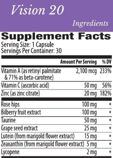 Once getting these facts laid down, he combined support elements for Vitamin A, and the rest is history for this particular dietary supplement. With a backgrounder on how figs and Vision 20 came to be, let us jump into Vision 20 ingredients' specifics.