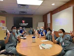 Front-line workers at the University Health Network (Toronto General and Toronto Western Hospitals, the Princess Margaret Cancer Centre, Toronto Rehabilitation Institute, and The Michener Institute of Education at UHN) enjoy TJP Labs' CANPALM donations in their battle against COVID-19.