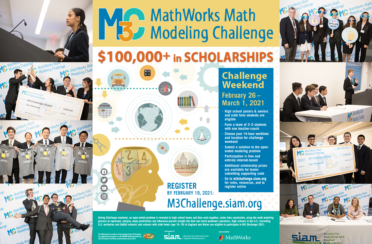 Registration is open until February 19, 2021. To register, visit http://m3challenge.siam.org.