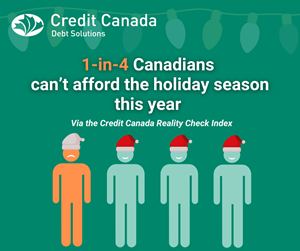 TORONTO, Nov. 17, 2020 (GLOBE NEWSWIRE) -- The Grinch will make an appearance in Canada this holiday season according to a new national survey by the non-profit credit counselling agency, Credit Canada. The Reality Check Index, an Angus Reid study of 1,500 Canadians, reveals that one-in-four Canadians (24%) from coast-to-coast will have to forego holiday celebrations in a year where people have already been hard hit by the pandemic.