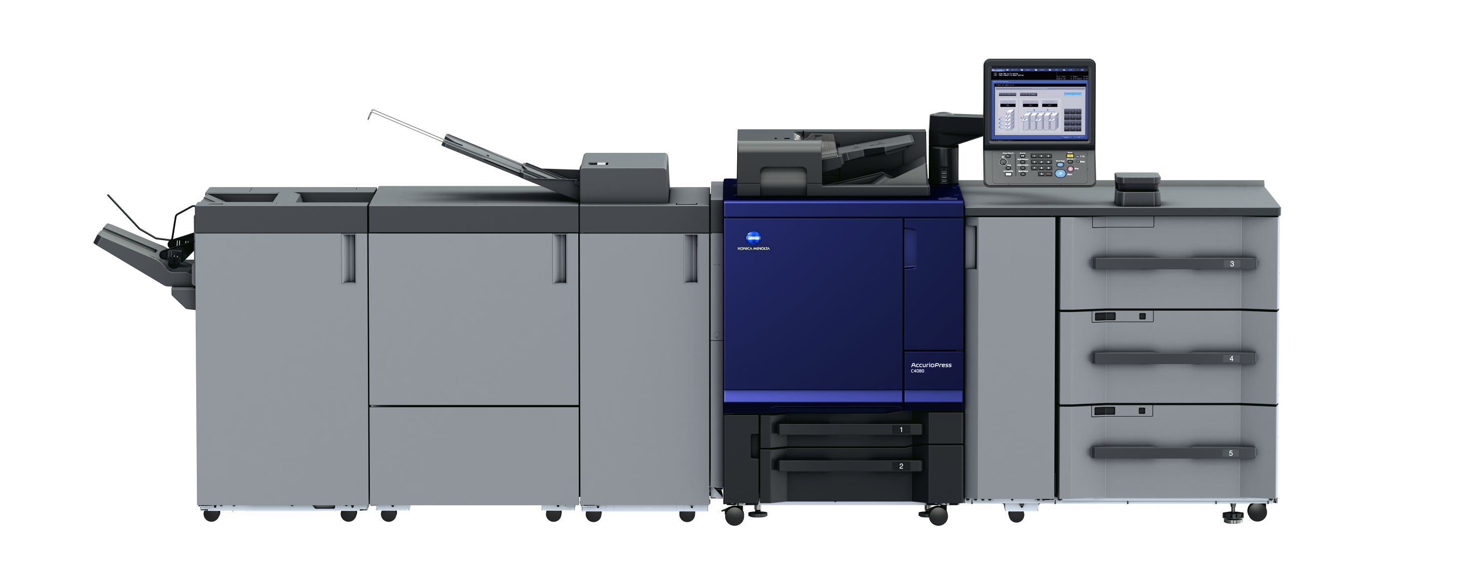 The AccurioPress C4080 is an all-in-one print factory that will help enable business growth through intelligent automation, outstanding image quality and print application diversity. The C4080 Series replaces the C3080 Series, an entry-level, light production press debuted in March 2018. The C4080 Series also includes the AccurioPress C4070 and AccurioPrint C4065, a lighter version of the C4080 that can bridge the gap between an office and production print with the same image quality at a more affordable price point.