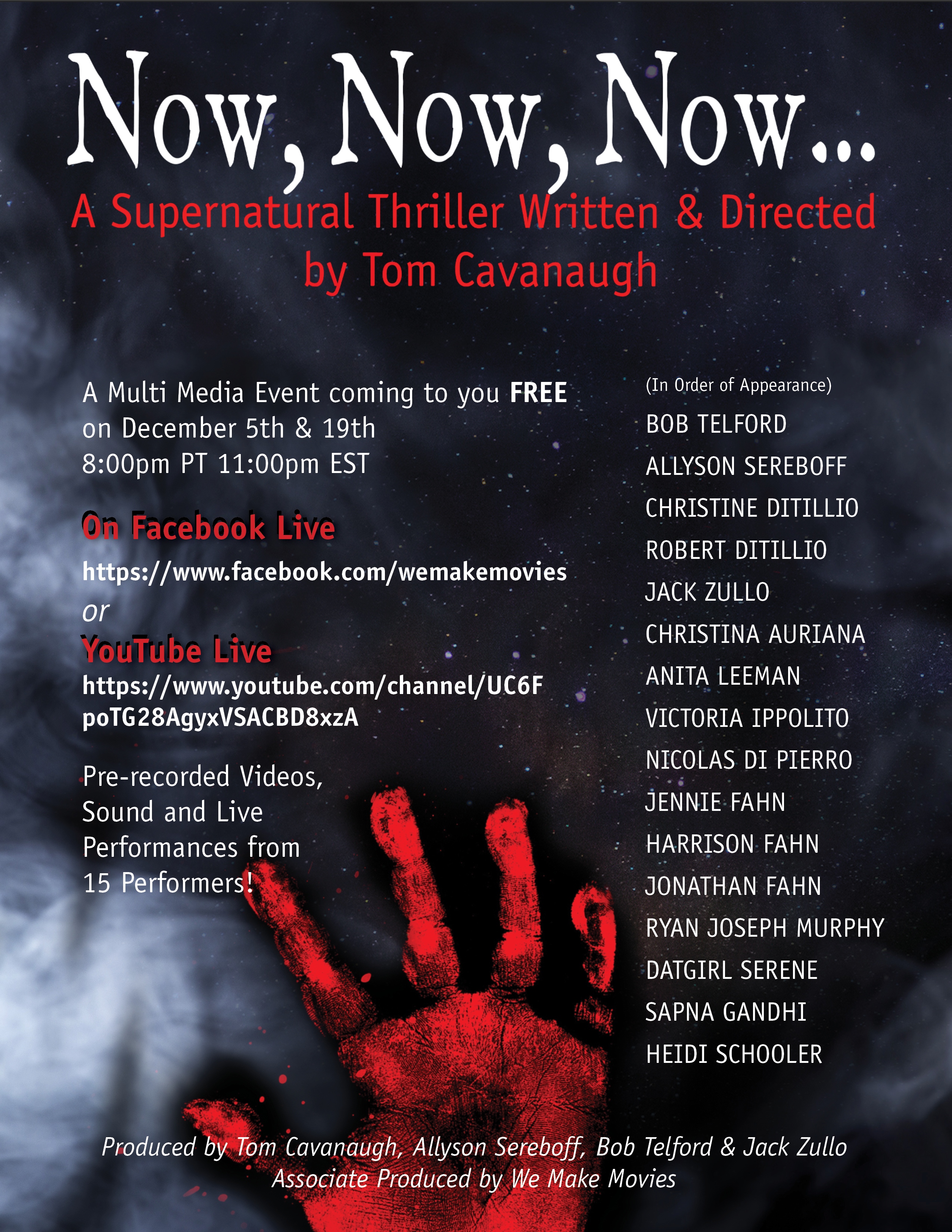 "Now, Now, Now..." a Livestream Zoom Thriller Returns December 5th and 19th, 2020, 8 pm PDT / 11 pm EDT