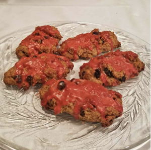 10. Turn each of the cooled piedras upside down to dip the top into the pink icing. Set them right side up to allow the icing to set; some of it will drip attractively down the sides.