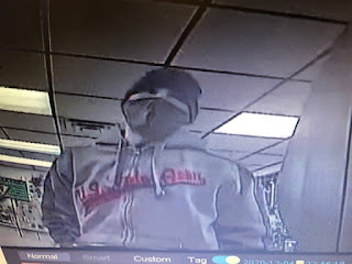 SUMMARY OF INCIDENT: On December 4, 2020, at approximately 10:49 PM, Troopers from the Vermont State Police, St. Albans Barracks, responded to an armed robbery at the Irving Oil gas station located at 3108 VT Route 78 in Highgate, VT. Upon meeting with store employees and reviewing video footage, it was learned that at approximately 10:46 PM, a lone white male subject described as approximately 5’03” tall and weighing approximately 160 lbs. entered the store, wearing a gray hooded sweatshirt with black stripes on the sleeves and a red “US Polo Assn” emblem on the front of the sweatshirt, blue jeans, white and black sneakers, black gloves, a black winter cap and a black mask. The male subject displayed a gun located in the pocket of his pants and ordered the clerk to open the drawer to the cash register. The male subject removed money from the register and exited the store. The male subject was last seen running east on Route 78 .