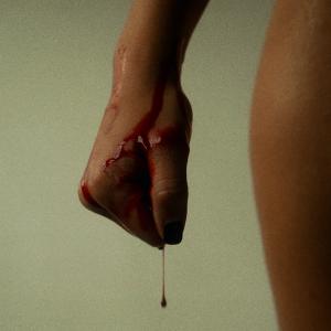 As he steps out, we see him barefoot with a smudged bloodstain on his shirt where his heart is.