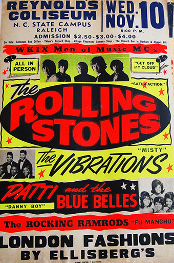 DENVER, CO, UNITED STATES, December 14, 2020 /EINPresswire.com/ -- Avid concert poster collector, Andrew Hawley from Vintage Rock Posters, announces his search for original 1965 Rolling Stone Globe Printing boxing style concert posters for three North Carolina shows in Raleigh, Charlotte, and Greensboro. Globe printed concert posters for the Stones' second U.S. tour that year. According to Hawley, "The Stones played Raleigh first on November 10, 1965, at N.C. State's Reynolds Coliseum. They played Greensboro the next night and Charlotte on the 15th. Their tour also took the band to Tulsa, Knoxville, Nashville, Memphis, Shreveport, Dallas, and Fort Worth. Fifty-five years ago, Mick, Keith, Charlie, and Brian enjoyed tremendous success at a young age, but they were still 20-year-olds. A young man named Ed "Charlie Brown," who worked at the local radio station in Raleigh, picked up the Stones at the airport. They started talking about R&B music and ended up at Brown's apartment to check-out his record collection. Later that afternoon, they picked up a bucket of Kentucky Fried Chicken on the way to Reynolds Coliseum. Listening to records and eating fried chicken is what 20-year-olds did back then."