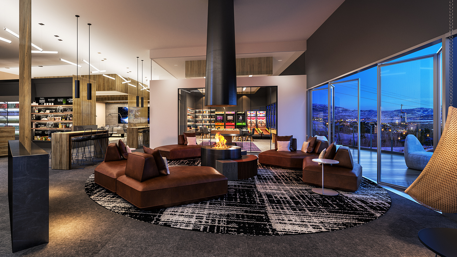 “This hotel experience infuses modern, international designs for indoors, outdoors and spaces in between, such as by the pool, around the fireplace and in the games room.