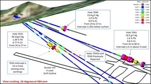 - Hole 7043: 18m at 18.5g/t Ag, 1.6% Pb, 4.6% Zn, including 4m at 32g/t Ag, 2.7% Pb, 10.2% Zn (high grade base metal)