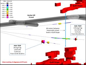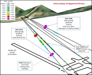 - Hole 7029: 0.9m at 349 g/t Ag and 1015 g/t Ag Eq (high grade silver)