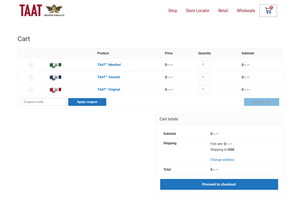 Screen capture from a provisional design for the TAAT™ U.S. online store, which is set to launch in January 2021: