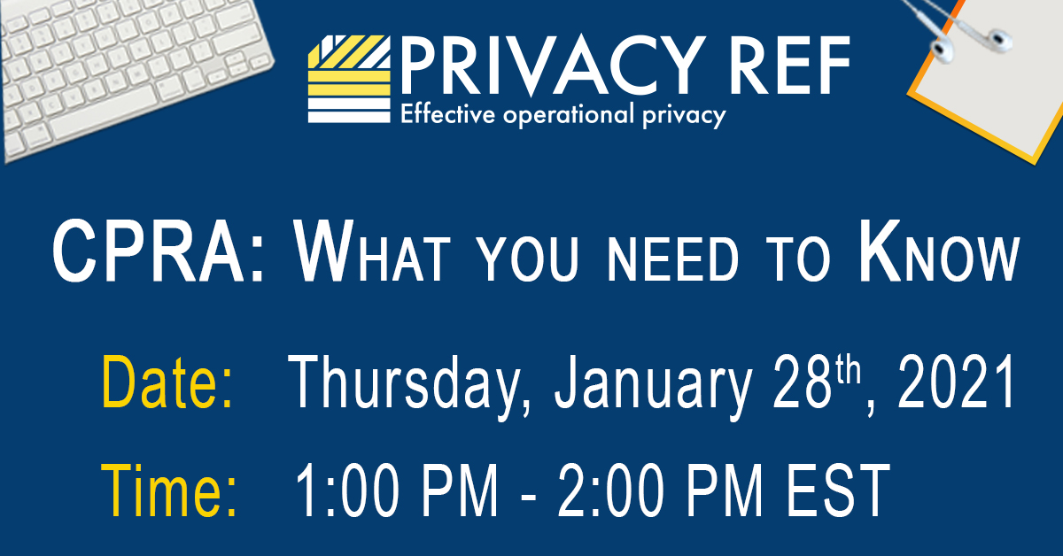 “Our high-quality Privacy Quick StartTM training will take place on January 26th, from 1:00 to 4:00 pm EST. This 3-hour course covers the basics of privacy, responding to privacy incidents, and basic regulations that may affect an organization. Then, tune in on January 28th from 1:00 to 2:00 pm EST to participate in a live online webinar about the California Privacy Right Act (CPRA)” Siegel continued.