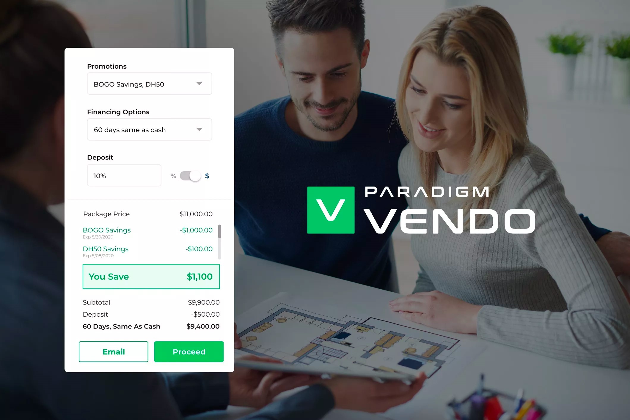 Whether face-to-face or in a virtual setting, Paradigm Vendo manages appointments, configures and compares products, generates quotes and contracts, captures e-signatures, and even processes orders directly through Paradigm’s manufacturer partners.