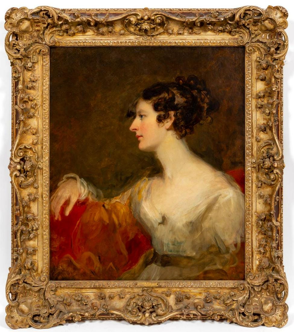 Oil on canvas Portrait of Miss Kent by Sir Thomas Lawrence (British, 1769-1830), unsigned, 30 ¼ inches by 25 inches (sight, less frame) ($25,000).