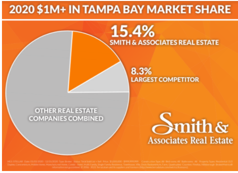 With 15.4% of the luxury market share in Tampa Bay, Smith maintained their domination of the luxury segment*. The nearest competitor was only able to capture 8.3% of the sales for homes at the $1M+ price point*. Smith accredits their team of agents who are deeply embedded in the community and known for their impeccable client service as the reason that they continue to lead in the Tampa Bay luxury real estate.