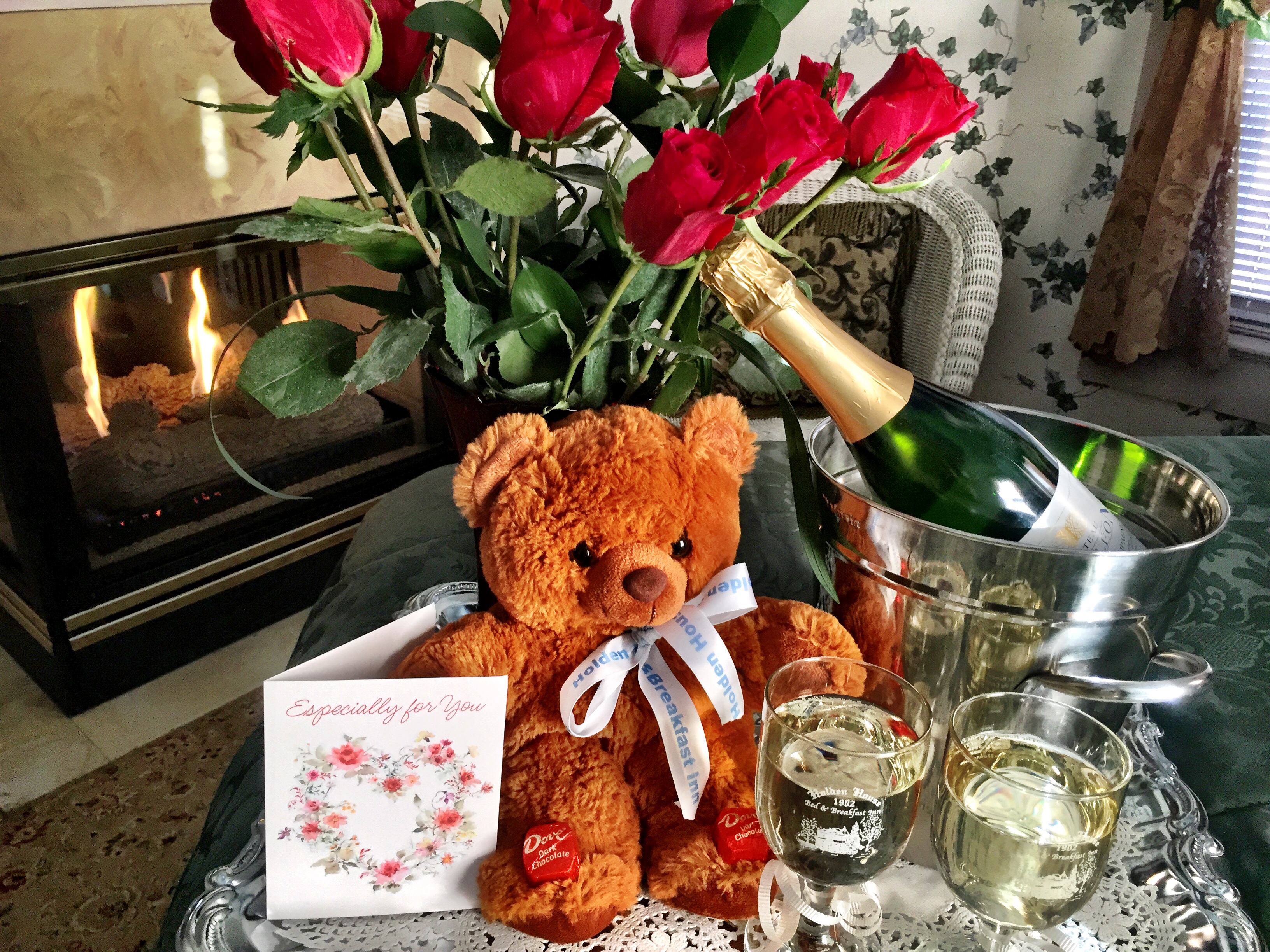 In addition to the discount packages, add-on packages include February's Bear-y Special Valentine Package with fresh long-stemmed roses, breakfast ensuite, sparkling cider, a Holden House Teddy Bear, signature embossed wine glasses and a rubber ducky. Other ongoing packages include a breakfast ensuite Romance Package, a Sparkle Package and a Massage for Two, with an additional package fee plus the room rate. Even if you're not able to getaway on Valentine's Day or during the month of February, you can reserve a future stay for your Valentine by booking now for later or purchase a gift certificate to present to your loved one in their Valentine package.