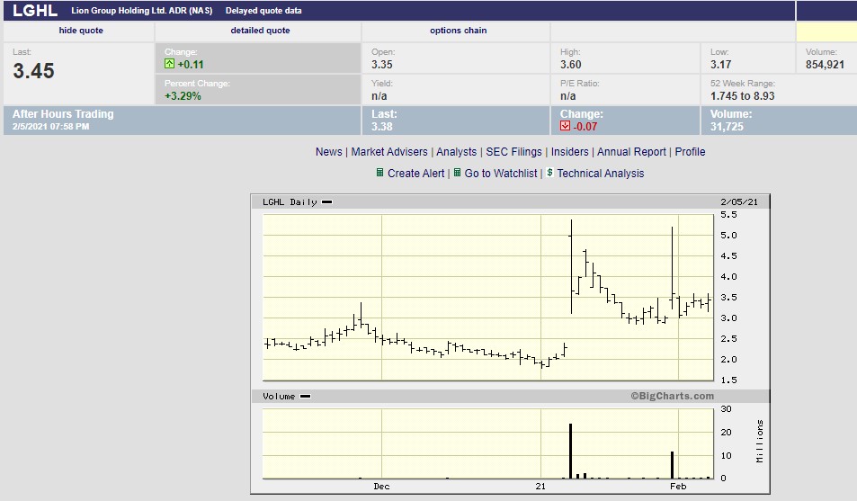 Now let’s take a look at what could be the next big winner in this hot 2021 market trend, and at a much easier entry price level for the average stock buyer. This is Lion Group Holding Ltd. (NASDAQ: LGHL) which operates an all-in-one trading platform that offers a wide spectrum of products and services with a focus on Chinese investors. Through its state-of-the-art technology, LGHL offers contract-for-difference (CFD) trading, insurance brokerage, futures brokerage, and securities brokerage on its platform, which can be accessed through applications available on the iOS, Android, Windows, and macOS systems. LGHL customers are well-educated and affluent Chinese individual investors residing both inside and outside the PRC as well as institutional clients in Hong Kong.