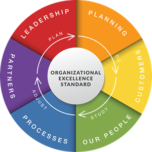 At a high-level, Excellence Canada focuses on the six drivers of organizational excellence: Leadership, Planning, Customers, Our People, Processes, and Partners.