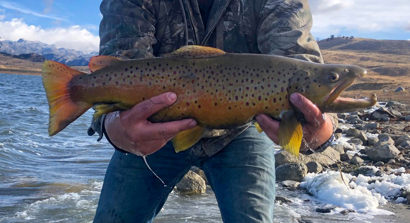 Jackson - Some October days in Wyoming can feel more like full-on winter than fall. And it was one of those days, with a cold steel wind blowing across the water of Soda Lake north of Pinedale. Sam Gertsch of Alpine admits he had thought twice about whether he really wanted to be out in it that day, but he decided to go for it. Turns out he was awfully glad he did as on his seventh cast he would tie into his tenth trophy class fish, a 24-inch brown trout (above), earning him the unique distinction of being an Ultimate Angler in the state of Wyoming.