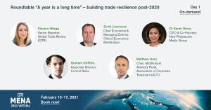The virtual panel discussion will also feature industry experts Scott Livermore, Chief Economist & Managing Director, Oxford Economics Middle East; Graham Griffiths, Associate Director, Control Risks; and Matthew Hurn, Chair of Middle East Advisory Panel, Association of Corporate Treasurers. The session will be moderated by Eleanor Wragg, Senior Reporter of Global Trade Review.