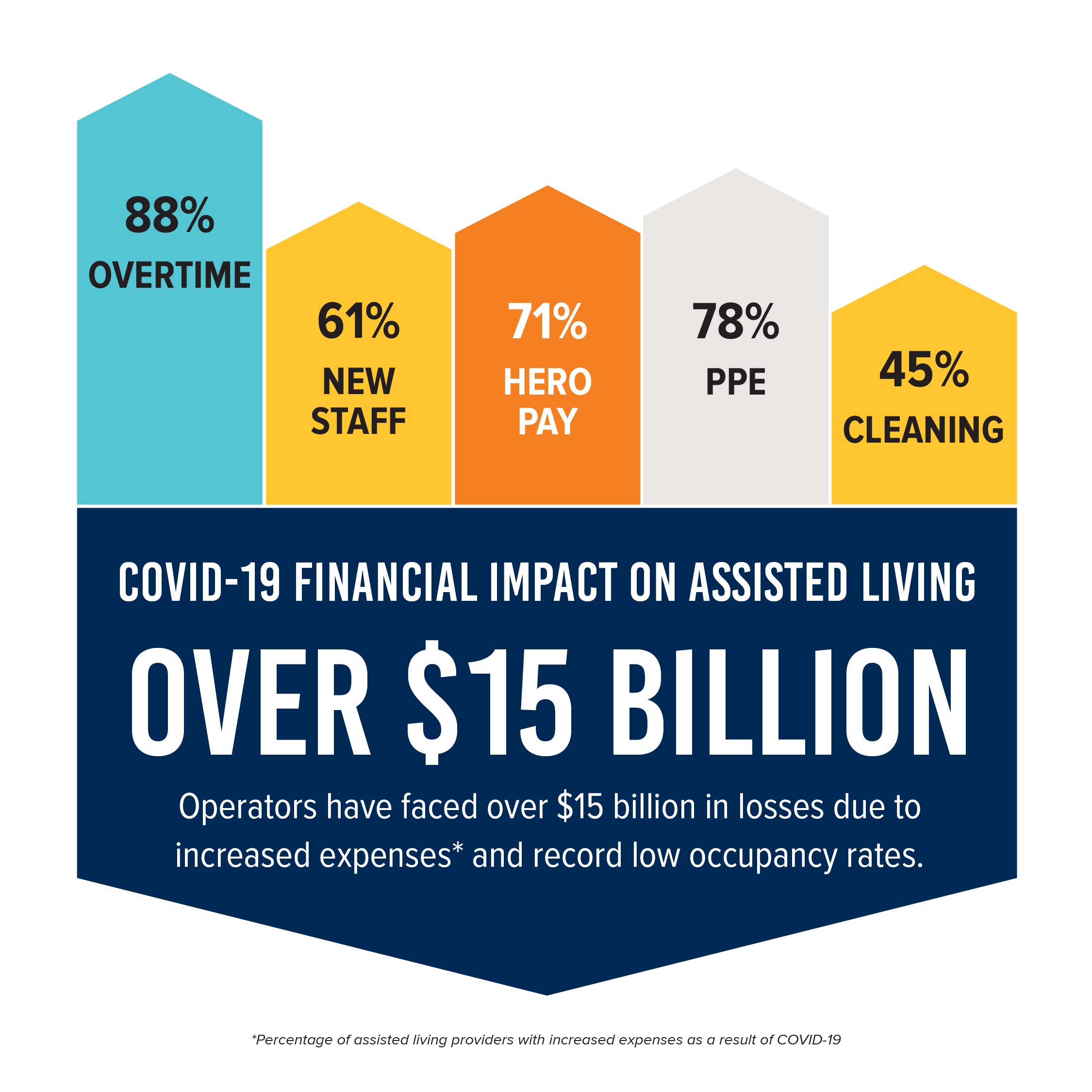 Alexandria, Va., Feb. 12, 2021 (GLOBE NEWSWIRE) -- Now a year into the COVID-19 pandemic, thousands of assisted living facilities are still waiting for federal COVID-19 relief, and for over half of them, closures are imminent, according to a recent Argentum member survey. They have faced over $15 billion in increased expenses and lost revenue, and these figures are increasing substantially each month. Meanwhile, provisions in the current COVID-19 relief package negotiated in the House of Representatives fall woefully short in protecting these seniors and caregivers.
