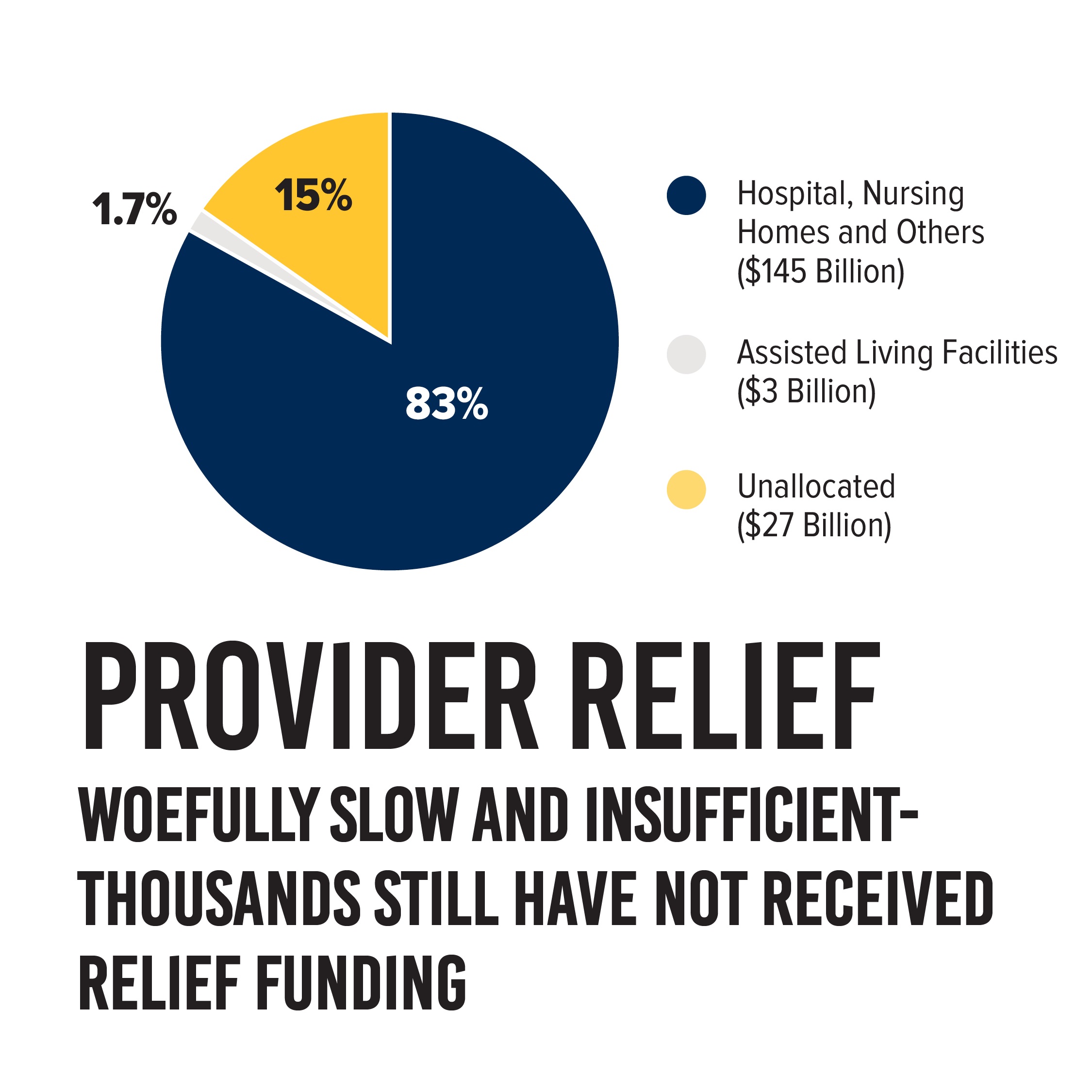 - Assisted living providers have been promised only 1.7% of the total Provider Relief Fund and have received far less to date. This is in comparison to 83% for nursing homes, hospitals, and other care providers.