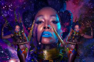 As she heads outside to empower other women, bubbles float around with new words that redefine our outlook in life. Positive phrases that we get to choose and take control of, like "optimism" and "purpose," are being embraced and claimed. The clip has many African influences as well, ranging from the colors, to the ensemble during the breakdown, to the Afrofuturistic "Sy Boogie” goddess who’s seen blowing the bubbles and ushering those characteristics of empowerment into the world for anyone who needs to catch them. The encouraging bubbles never cease; in fact, the last one to float across the screen states "freedom," the release you feel when you're "Feeling Good."