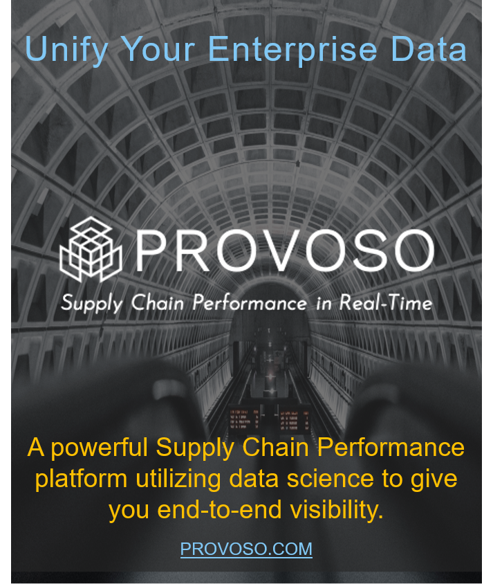 PROVOSO is a powerful cloud data unification platform that operates at unprecedented speed and scale, delivering insights on supply chain performance in real-time. We combine the power of advanced technologies and process knowledge of the end-to-end supply chain to deliver game-changing platforms. Contact PROVOSO at info@PROVOSO.com, or call +1-484-288-2752.