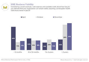 TORONTO, March 01, 2021 (GLOBE NEWSWIRE) -- In the latest survey from The Business Monitor, released by Modus Research, Canadian executives were asked how long could their organizations remain viable, assuming current public health restrictions remain in place. This question was asked in the spring, fall and winter of 2020.