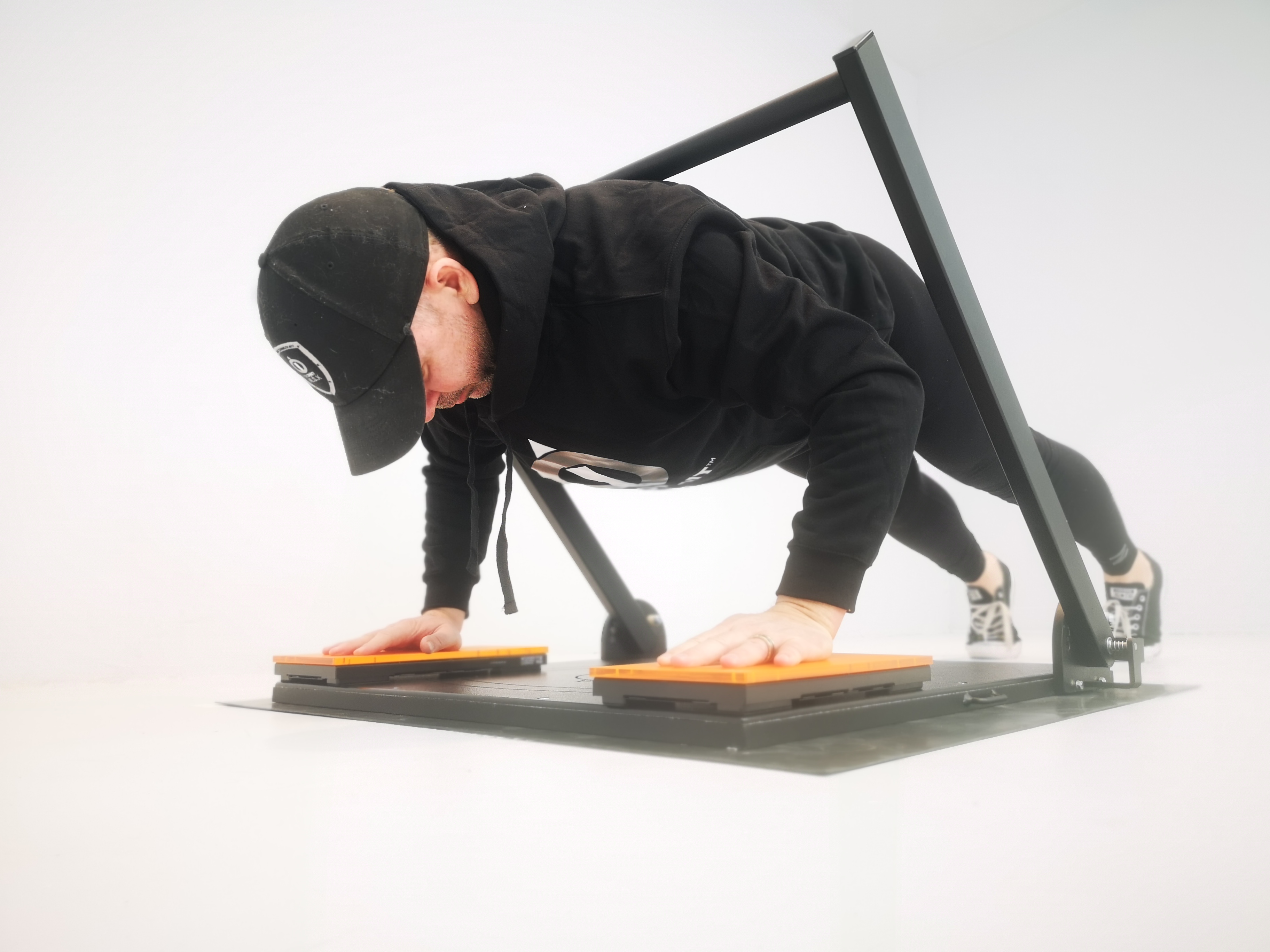 Isophit inventor Brad Thorpe demonstrates and measures an isometric push on the Isophit M.S.K with Kinvent's KForce Plates.