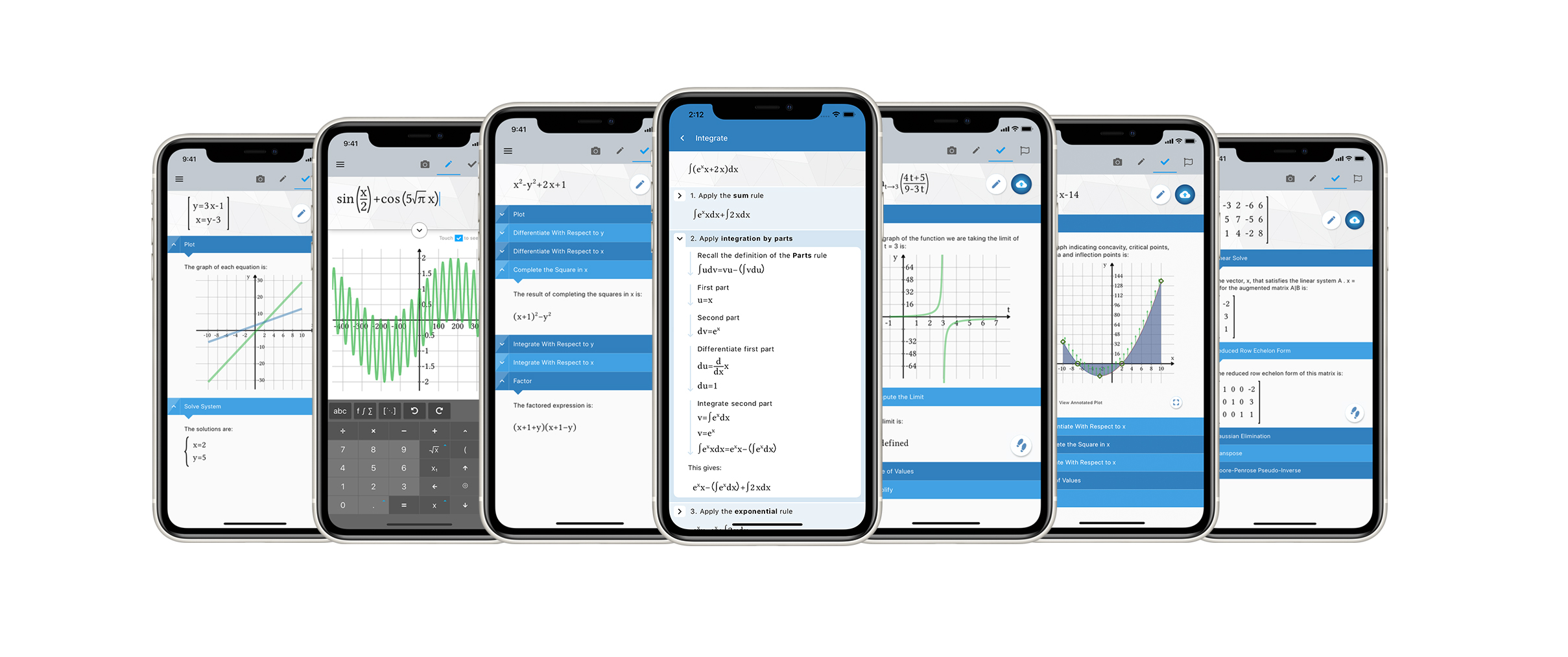 Students can enter problems into Maple Calculator using the phone’s camera. They can take a picture of a handwritten or typeset math problem, and the app will use AI technology to translate the image. Alternatively, they can enter the problem directly using the same mathematical notation they would use in their own notebooks. Once entered, students can choose to perform a variety of mathematical operations, such as graphing the 2-D curve or 3-D surface, finding an integral, solving a system of equations, inverting a matrix, factoring a polynomial, and much more. The available operations change according to the mathematical expression that was entered, so they are always relevant.