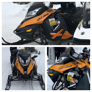 SUMMARY OF INCIDENT: On 3/6/21, Troopers with the Vermont State Police received a report of a stolen snowmobile from Tara Barros that her husband's snowmobile was stolen from their snowmobile trailer at approximately 0930 hours on 3/4/21. The snowmobile is a 2013 orange Skidoo MXZ 800 with registration 4458F. The subjects arrived at the house in a gold SUV in which three people got out of, two males and a female. One male was wearing a black hoodie with an American flag on the back and orange gloves.
