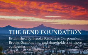 Bend Foundation’s mission is to stimulate and enhance a thriving and creative community in Bend. Established and funded by Brooks Scanlon, Brooks Resources and its shareholders, Bend Foundation was originally formed in 1947 as a resource for injured loggers and mill workers, and to provide scholarships for industry workers. Over the years, Bend Foundation has performed as a leader in our community by identifying and supporting key needs in an effort to maintain and improve the livability in Bend and throughout Central Oregon. Bend Foundation is located at 409 NW Franklin Ave in Bend and more information can be found at www.bendfoundation.org.