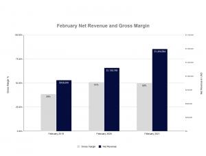 -Gross margin for February 2021 was 50%, maintaining the Company’s goal of 50% or higher.